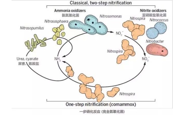 硝化是指一個(gè)生物用氧氣將氨氧化為亞硝酸鹽繼而將亞硝酸鹽氧化為硝酸鹽的作用。尤指將有機(jī)化合物轉(zhuǎn)化成硝基化合物或硝酸酯(如用硝酸和硫酸的混合物處理)。將氨降解為亞硝酸鹽的步驟常常是硝化作用的限速步驟。硝化作用是土壤中氮循環(huán)的重要步驟。