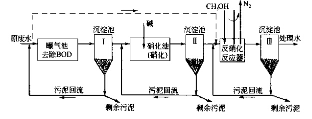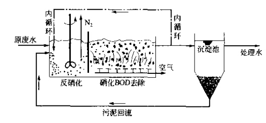 污水中的氮一般以有機(jī)氮、氨氮、亞硝酸鹽氰和硝酸鹽氮四種形式存在。生活污水中氮的主要存在形態(tài)是有機(jī)氮和氨氮。通常采用的二級(jí)生化處理技術(shù)對(duì)氮的去除率是比較低的,一般將有機(jī)氮化合轉(zhuǎn)化為氨氮,卻不能有效地去除氮。污水脫氮,從原理看,可以分為物理法、化學(xué)法和生物法三大類。由于生物脫氮一般能夠滿足有關(guān)方面對(duì)污水凈化的要求,而且價(jià)格低廉,產(chǎn)生的二次污染物較易處理,因此生物脫氮方法是當(dāng)前最活躍的研究與投資開發(fā)領(lǐng)域。 一、生物脫氮技術(shù) 生物脫氮技術(shù)主要是利用污水中某些細(xì)菌的生物氧化與還原作用實(shí)現(xiàn)的。生物脫氮工藝從碳源的來源分,可分為外碳源工藝和內(nèi)碳源工藝;從硝化和反硝化過程在工藝流程中的位置來分,可分為傳統(tǒng)工藝和前置反硝化工藝;按照細(xì)菌的存在狀態(tài)不同,可以分為活性污泥法和生物膜法生物脫氮工藝。前者的硝化菌、反硝化菌等微生物處于懸浮態(tài),而后者的各種微生物卻附著在生物膜上。 1.活性污泥法 活性污泥法是一種歷史悠久、目前應(yīng)用最廣泛的生物脫氮技術(shù),它有許多種形忒。 (1)活性污泥法傳統(tǒng)流程這是一種傳統(tǒng)的三級(jí)生物脫氮工藝,即有機(jī)物的氧化、硝化和反硝化作用分別在不同的構(gòu)筑物中完成,如下圖所示: 由于有機(jī)物去除、氨氧化和硝酸鹽還原依次進(jìn)行,彼此之間相對(duì)獨(dú)立,并分別設(shè)置污泥沉淀及回流系統(tǒng),系統(tǒng)運(yùn)行的靈活性比較強(qiáng),有機(jī)物降解菌、硝化菌和反硝化菌的生長環(huán)境均較佳,因而反應(yīng)速度快,脫氮效果也比較好。但是,三級(jí)活性污泥法的流程長、構(gòu)筑物多、附屬設(shè)備多,因此基建費(fèi)用高、管理難度大。此外,為了保持硝化所需的穩(wěn)定pH值, 往往兩要向硝化池加堿,為了保證反硝化階段有足夠的電子受體,需要外加甲醇等碳源,為了除去尾水中剩余的有毒物質(zhì)甲醇,又必須增設(shè)后曝氣池,所以運(yùn)行費(fèi)用也很高??梢钥闯?,這種工藝的確具有很大的局限性。 如果將有機(jī)物去除和硝化放在同一個(gè)反應(yīng)器中進(jìn)行,而將反硝化作用放在另一個(gè)反應(yīng)器中進(jìn)行,則可以將三級(jí)生物脫氮系統(tǒng)簡化為兩級(jí)生物脫氮系統(tǒng)。如下圖: 與三級(jí)生物脫氮流程相比,兩級(jí)生物脫氮流程的基建費(fèi)用和占地面積均有所降低,但是仍然需要外加甲醇和堿源。 (2)前置反硝化生物脫氮系統(tǒng)又稱缺氧-好氧活性污泥脫氮系統(tǒng)、A/0生物脫氮流程、 改良LudMck-Euinger工藝等。前置反硝化是目前使用比較廣泛的一種脫氮工藝(分建式缺氧好氧活性污泥脫氮系統(tǒng)如下圖:)。 除分建式系統(tǒng)外,本工藝還可以建成合建式裝置,即將缺氧和好氧環(huán)境放在-個(gè)構(gòu)筑物內(nèi),中間以擋板隔開,擋板下端與池內(nèi)壁之間以一定的縫隙相通,如下圖所示: 采用合建式裝置,對(duì)于現(xiàn)有推流式曝氣池的改造來說更加方便。 與傳統(tǒng)的生物脫氰流程相比較,該流程具有如下優(yōu)勢(shì)。 ①由于構(gòu)筑物數(shù)量減少,因而流程得以簡化,占地面積減少,且缺氧段消耗原污水中的部分有機(jī)物,能夠降低好氧段的有機(jī)物污泥負(fù)荷,不僅容易使硝化菌取得競爭優(yōu)勢(shì),而且降低了曝氣充氧的電耗,因而基建費(fèi)用和運(yùn)行費(fèi)用均比較低。 ②將缺氧段放在好氧段前邊,可以起到生物選擇器的作用,有利于防止污泥膨脹,改善活性污泥的沉降性能。 ③反硝化過程能夠充分利用原污水中有機(jī)物和內(nèi)源代謝產(chǎn)物作為電子受體,既可以減少或取消外加碳源,從面省去后曝氣池,提高處理水水質(zhì),又可以保證較高的碳比,有利于反硝化的充分進(jìn)行。 ④由于存在內(nèi)循環(huán),缺氧反硝化產(chǎn)生的堿度能夠補(bǔ)償硝化反應(yīng)所造成的pH值下降,大大降低了堿投加量。 前置反硝化生物脫氮系統(tǒng)也有自己的不足之處。一是處理出水中含有一定濃度的硝酸鹽,可能污染受納水體。第二,由于內(nèi)回流比限制本工藝的脫氮率一般為70%~80%, 很難達(dá)到90%。而且,該工藝對(duì)運(yùn)行管理人員的素質(zhì)要求比較高。例如,如果系統(tǒng)運(yùn)行不當(dāng),沉淀池內(nèi)將發(fā)生反硝化反應(yīng),造成污泥上浮,使處理水惡化。 (3)氧化溝工藝從工藝、流態(tài)和構(gòu)造方面看,氧化溝也非常適合于生物脫氮。 ①氧化溝的污泥齡通常很長,一般可達(dá)15~30d,非常適合于世代時(shí)間長、增值緩慢的硝化菌存活與繁殖。 ②氧化溝往往做成總長達(dá)幾十米甚至上百米的環(huán)行構(gòu)筑物。由于循環(huán)次數(shù)多達(dá)72次其至360次,混合液沿溝道方向近似于完全混合式。然而由于工藝狀況不同,混合液中溶解氧的濃度在不同位置也存在很大差異:在曝氣器的附近非常容易出現(xiàn)DO比較高的富氧區(qū),而在遠(yuǎn)離曝氣裝置的地方,容易出現(xiàn)DO比較低的缺氧區(qū),使硝化和反硝化能夠在同一裝置中順利進(jìn)行,從而達(dá)到生物脫氮的目的。 據(jù)報(bào)道,Carrousel氧化溝、交替工作氧化溝、二次沉淀池交替運(yùn)行氧化溝、Orbal型氧化溝、曝氣-沉